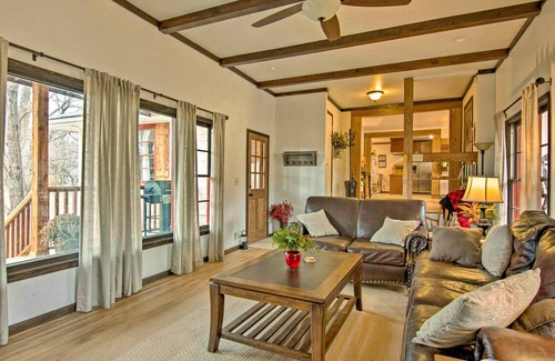Boasting 2.5 private acres with a fire pit and creek access, this Sand Springs home is just 7 miles but a world away from Tulsa. The 2-bedroom, 2-bathroom home features a furnished back porch overlooking the towering pecan trees, a cozy wood-burning fireplace, and utter tranquility only minutes from the city. Visit Keystone State Park to fish, boat or water ski on the lake, tour the Philbrook Museum of Art or the Gilcrease Museum and catch a game or headliner's concert at the BOK Center!
