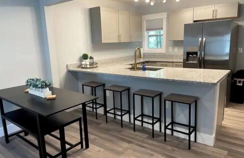 Your stay at the Cozy Savannah 5BR Home includes a wealth of amenities to ensure comfort and convenience. The main house features four bedrooms, including a master suite with a private bath, while an attached suite provides extra privacy for couples or family members. Both kitchens are fully equipped, allowing you to cater your events seamlessly. Enjoy the cozy living room equipped with Roku TV, perfect for relaxing evenings after wedding festivities. Free Wi-Fi, laundry facilities, and a lovely outdoor space complete the experience, making this home a sanctuary for wedding parties.
