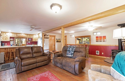 Situated on nearly 10 acres in the Bitterroot Mountains, this cabin provides tranquility and privacy. Inside the main house, you will find a cozy interior with all the modern amenities. The Master Suite has a large king bed and access to the deck outside. There is a sleeper sofa that sleeps an additional 2 guests.