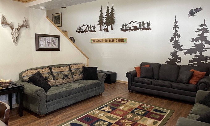 This newly built, year-round cabin sleeps 4 comfortably; suitable for up to six with a queen-sized sleeper sofa in the living room. There is also room for a blow-up mattress if you would like to bring one with to provide for 8. Everything you need awaits you!!