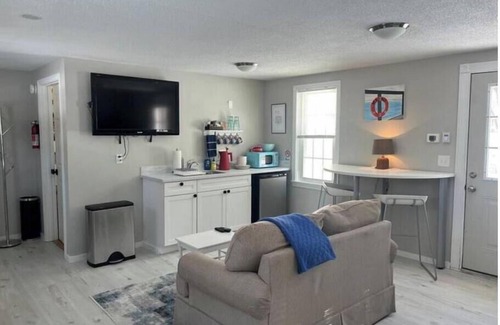 Cozy and secluded, but a stone's throw to downtown Portland and the Old Port. Bright, with lots of windows and light, overlooking a private backyard and trees. With your own gas fireplace, and charming living room, have yourself a little Maine exploration getaway or quiet remote workcation with sit/stand desk and fiber internet.
