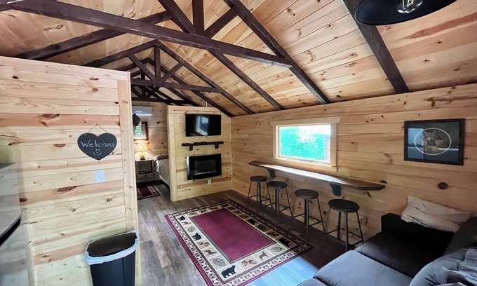 Cabin near the smoky mountains. About an hour from Gatlinburg/Pigeon Forge. Enjoy a quiet night by the fire pit. Or inside by the fireplace. Kitchen has double hot plate refrigerator and a microwave..