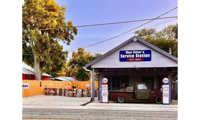 A little history of Staples Service Station. It is believed that the old service station was in service as early as 1922. It had changed owners a few times since then. The picture on the wall as you walk in is one of the only known pictures to exist. The picture was taken around 1940. The owner in the late 1940s to the 1970s was Mac Turner. At that time, it was Mac Turners Service Station. During the remodeling, the original business licenses were attached to the wall. The earliest being 1946. After Mac Turner retired, the service station was purchased by Ben and Edna Silva. Ben Silva and his daughter Adela Silva ran the service station thru the mid-1980s. After that, it was turned into a mexican restaurant and a beauty salon. It sat vacant from the early 2000s until it was remodeled in 2020 to what it is now.