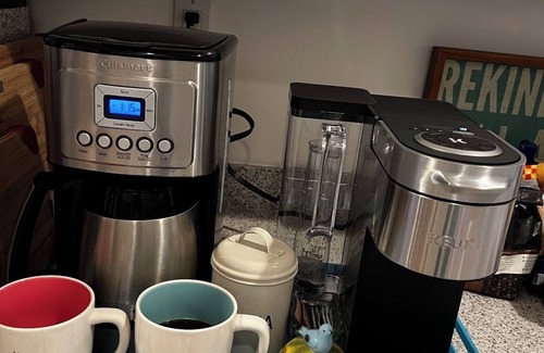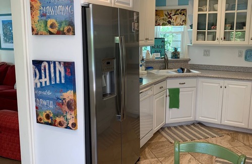Recently updated kitchen has refrigerator, gas stove, oven, microwave, toaster oven, coffee maker, coffee grinder, crock pot, blender, and dishwasher. The living room and master bedroom each have a flat screen Smart TV and DVD player. There's a high chair, porta-crib, and toddler bed rail, as well as a set of plastic dishes in the kitchen for your little ones.