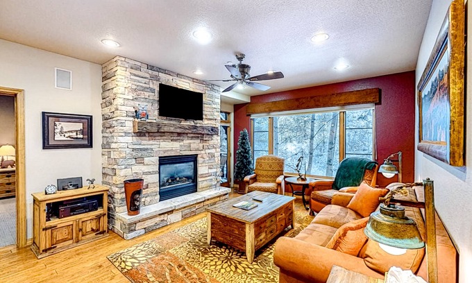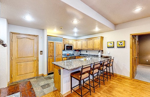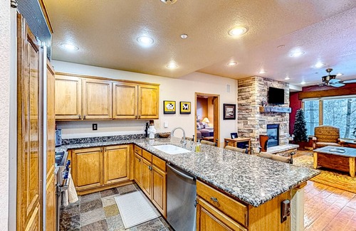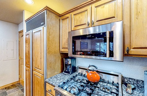 Back at home, fire up the private grill on the condo's mountain-view balcony. Inside, continue to enjoy tree-lined views in front of the warmth of the fireplace. Settle down here and stream your favorite shows on the smart TV, or continue to prepare tasty treats amidst the modern kitchen's fridge, microwave, and stove.