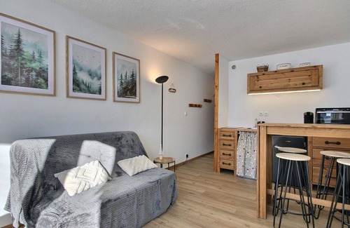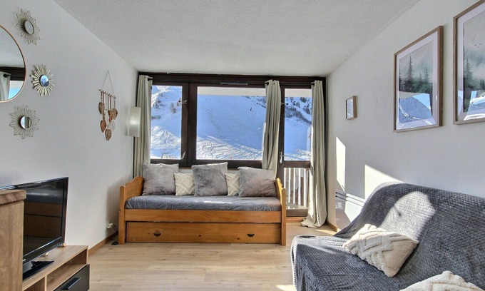 Nice studio for 3 people, facing south with balcony, Level M ([hidden] 6th floor in relation to the snow front), very beautiful view, plenty of sunshine
