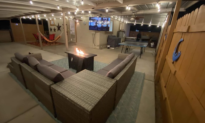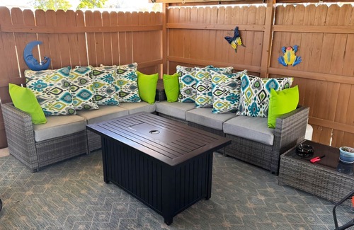 Our vacation bungalow is prepared and maintained with the comfort of our guest's as our first priority! This cozy bungalow has a huge private, covered patio with hot tub, gas fire pit, ping pong, Roku television, gas grill, ceiling fans and outdoor seating and dining to enjoy Arizona's outdoor living and family fun! Inside the bungalow, you will find a renovated, clean 2bd/1bth bungalow with large, fully appointed eat in kitchen, and cozy living room to relax after a day exploring. In 2023 we installed a new HVAC system and it has double pained windows to keep you cozy in the cool winter months and cool during the warm summer days. Bedrooms have cozy carpet, furniture and new beds in February 2023 with high-end linens and cozy duvet comforters, all cleaned between every guest. Large fully fenced lot has plenty of parking for motorcycles, ATV's, boats or RV with full hook ups! Quiet neighborhood, we know all the neighbors. It is just minutes from I60 and the I202 loop and many restaurant and shopping options all within close proximity to this home, ask us for recommendations. Easy shot over to the east valley baseball spring training stadiums; the Renaissance festival in February/March and many other events. If you would like to enjoy the gorgeous outdoors here in Arizona you are 10-15 minutes from recreation in the Tonto National Forest or Usery Park!