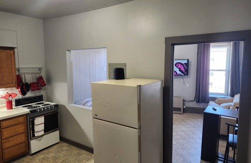 Welcome to our cozy and affordable studio apartment, located in the historic Kaleva Temple building just outside of Houghton and Michigan Tech. Whether you're a traveling professional, a student, or just someone looking for a comfortable and convenient place to stay while exploring the Upper Peninsula, our apartment is the perfect choice.
