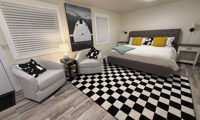 Escape to this tranquil studio in College Place. With an incredibly comfortable king size bed, AC, full kitchen, washer/drier and 65” TV available, guests can relax in comfort. This tremendous space offers a peaceful retreat plus a pickleball set you can use at a park nearby! A great place to call homebase while you're away, we hope you enjoy your stay.
