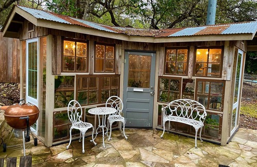 Located in the charming wooded setting of Grey Forest, this studio cottage has all the comforts of home. Sip tea in your own greenhouse, cocktails by the fountain or warm yourself by the fire pit. This cottage is perfect for taking a break from all the stresses of modern life, or simply for relaxing after an eventful day visiting SeaWorld, Fiesta Texas, or Floore’s Country Store - the iconic country music venue. Enjoy a romantic dinner in rustic elegance at the Grey Moss Inn. Spend an afternoon in nature at the Guadalupe River or Canyon Lake or take a 20 minute drive to the romantic San Antonio RiverWalk. The studio sits at the far end of this historic property behind the main house. This little country paradise is nestled right on the outskirts of NW San Antonio and was home to the famous landscape artist Robert Wood back in the 1930's & 40’s. THE SPACE: This cottage is a studio, furnished with a comfortable Queen Bed, a well equipped Kitchen with granite countertops, stove and refrigerator and a Bathroom with shower. This cottage has High-Speed Wireless Internet access as well as a Flat Screen Smart TV with Netflix and local channels. GUEST ACCESS: You will have access to a furnished stone courtyard with a waterfall fountain, a fire pit and charcoal grill. The Studio Cottage also has two outdoor chairs and an adjoining greenhouse with a table and chairs. THE NEIGHBORHOOD: Perhaps the best feature of our cottages is that they are located in historical Grey Forest not far from the old Boerne to San Antonio stagecoach line. We are just minutes from SeaWorld and Six Flags and only about 17 miles from the Alamo and the romantic San Antonio Riverwalk and about 20 miles from the beautiful Guadalupe River State Park. If you want to stay closer, within walking or biking distance is a very romantic and well-known restaurant called the ‘Grey Moss Inn’ ( In addition there are various nature walking paths, a spring fed creek and Madla Natural Area close by. We are only 2.5 miles from Old Town Helotes, which is home to the John T. Floore Country Store where major Country Music acts routinely perform. ( It is where Willie Nelson got his start and still plays every October. Market Days are every first Saturday of the month where you can visit are several shops and just enjoy the "Old Town" feel.
