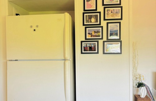 This beautiful property features 2 cozy bedrooms - one with a queen bed and the other with a twin bed. The bathroom comes equipped with a hair dryer for your convenience. Relax in this tranquil space that offers AC and heating. We're happy to assist with any questions while you stay at our Cozy Studio Ghibli unit.