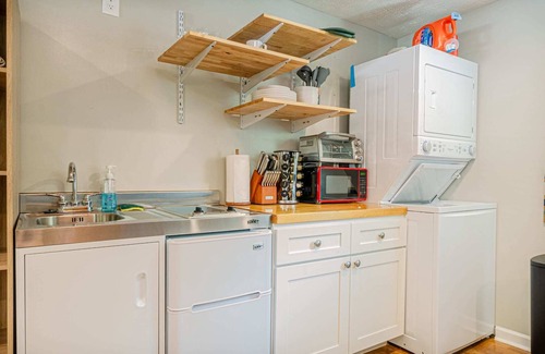 Step into a stylish and functional studio retreat, thoughtfully designed to provide ultimate comfort in a compact space. This inviting home features a convenient full bathroom, an in-unit washer and dryer, and a charming coffee bar to kickstart your mornings. Unwind with your favorite shows on the 55-inch TV from the comfort of a plush sofa couch. With modern amenities and a welcoming atmosphere, it’s the perfect base for both relaxation and adventure.