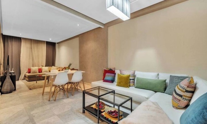 Discover this modern 48 sqm studio situated on the 2nd floor of a secure residence in the prestigious Golden Triangle area of Casablanca. Ideal for tourists, families, or business travelers, this stylish apartment offers a comfortable and convenient stay. Enjoy high-speed fiber optic internet, centralized air conditioning, and a Smart TV with Netflix for your entertainment. The fully equipped kitchen and washing machine make your stay effortless, while the balcony provides a lovely outdoor space to relax. Parking is available for your convenience. Located in a peaceful neighborhood, this studio combines tranquility with easy access to the city’s attractions. We offer flexible check-in and attentive customer service to ensure a smooth and enjoyable experience.