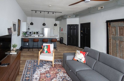 Welcome to our downtown Airbnb, a historic gem that has stood since 1890. We've crafted a space with vibrant touches, ensuring your stay is as delightful as the rich history right outside. Our space is an open concept studio, with a full kitchen, one queen bed, a pullout sofa bed that sleeps two, full bath, and full size washer and dryer. You will have to climb a flight of stairs to reach the apartment. As you explore the down town area just outside the BNB, you'll discover an array of fantastic restaurants, excellent shopping, and just 3 blocks from the UCM campus.