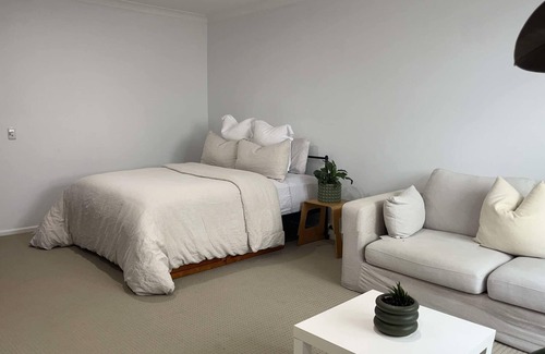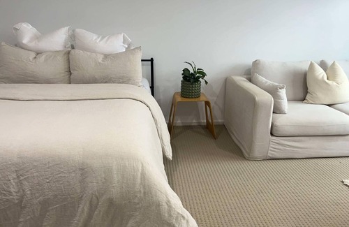 Cozy Studio with Private Entrance & Ensuite. This charming studio is the perfect getaway for couples, offering a comfortable queen bed, lounge area & TV for your relaxation. Bar fridge, kettle, toaster, & microwave for light meals. Reverse cycle air conditioning to ensure your comfort, regardless of the weather.