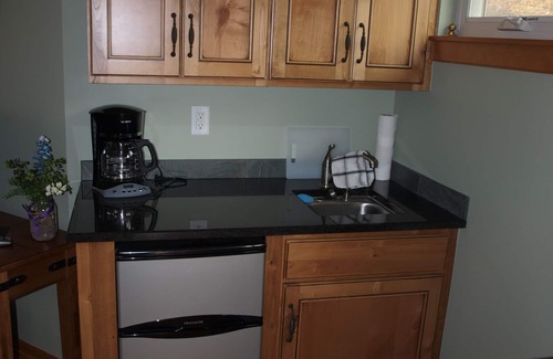 Private Studio with private entrance, lots of natural light, queen bed, private bathroom (includes stand up shower with seat & grab bars), walk in closet, mini fridge, WiFi, cable TV, microwave, coffee pot, dishes, double leather reclining sofa, desk space.