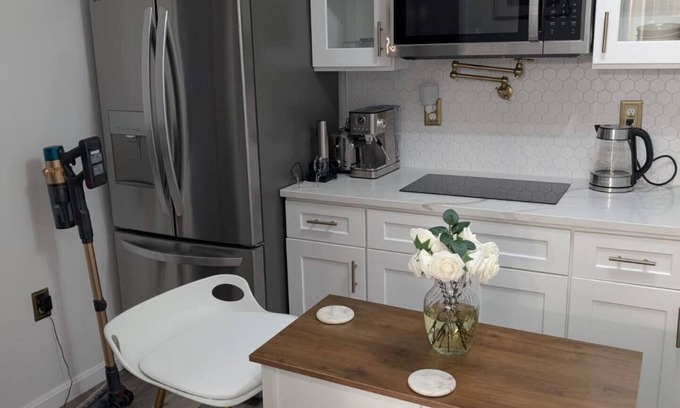 Newly renovated studio in Baltimore. This is a unique space for 2 people, comes with a great modern facility upgraded to make your stay memorable. A nice kitchen with pot filler and a nice cabinets that includes glass. A nice two persons kitchen island for dining.