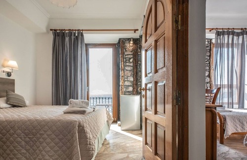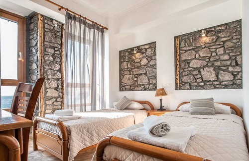Wake up to unforgettable sunrises and fall asleep to the soothing sound of waves crashing on the shore. Relax at this beachfront neoclassical building with beautiful inner stone walls, renovated in 2017. Spend the day at the beach, explore the island's capital and have a delicious seafood dinner at sunset at the restaurant nearby.