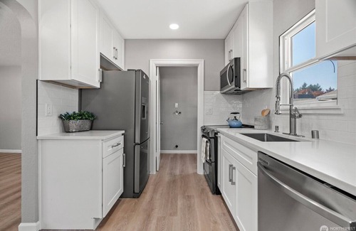 Discover the charm of Sumner, WA, with our cozy 2-bedroom, 1-bath home, nestled in a tranquil neighborhood. Perfect for families and friends, this inviting space features a fold-out couch for additional guests, ensuring everyone has a comfortable place to rest. Each room is equipped with a TV, catering to your entertainment needs. Our home is pet-friendly, surrounded by a fully fenced yard, parks, and scenic walking trails, making it a haven for both you and your furry friends. The convenience of an in-house laundry room adds to the ease of your stay. Located within walking distance to delightful dining and shopping options, you'll experience the local charm effortlessly. Plus, with freeways nearby, exploring the broader area or commuting is a breeze. Make your stay memorable in this cozy, comfortable retreat, where every detail is designed for your relaxation and convenience.