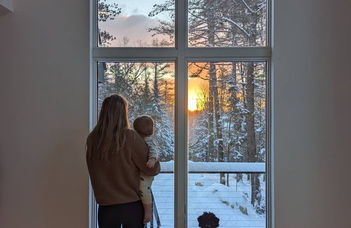 The home is surrounded by southwesterly views of the White Mountains and the forest, and offers easy access to the slopes, trails, and town. The outdoor adventures are your doorstep are endless: nordic and alpine skiing, snowboarding, snowshoeing, sledding, hiking, biking, golfing, swimming, fishing, climbing and more. Prefer to take it easy and have a glass of wine or a good burger? Sparrowhawk Lodge is five minutes from downtown Bethel and its lively restaurant scene. Or you can simply relax and unwind at the house, soaking in the hot tub, working out in the gym/yoga room, reading by the electric fireplace, playing games, or watching movies in the cozy theater room.