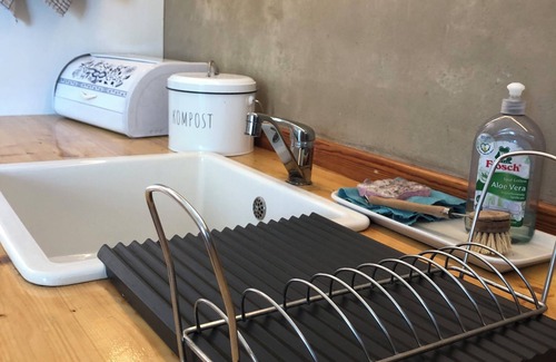 The garden offers a high biodiversity (dry flower meadow, berry bushes, peach tree, a butterfly raised bed, Mediterranean beds). The cottage is built from natural and sustainable materials and has a garden irrigation system.