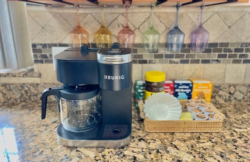 You will also have a full well equipped kitchen with blender, air fryer, toaster, coffee maker, baking sheets, and pots and pan.