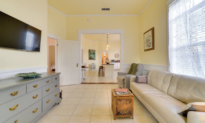 Gather loved ones and pets and take a trip to Thomasville, Georgia, where you can walk to The Big Oak and several downtown attractions from this charming vacation rental. Getting hungry? Prepare a meal in the open and well-stocked kitchen and dine on the deck’s spacious outdoor dining area! When the sun sets, roast marshmallows by the fire pit or watch a movie in the living room. This 3-bedroom, 2-bathroom cottage also features a workstation, a large breakfast bar, and a washer and dryer.