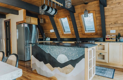Welcome to prime mountain living in style. The organic architecture of The Timber A-Frame is a bridge to nature, enhancing the beauty of the surrounding two acres of forest.