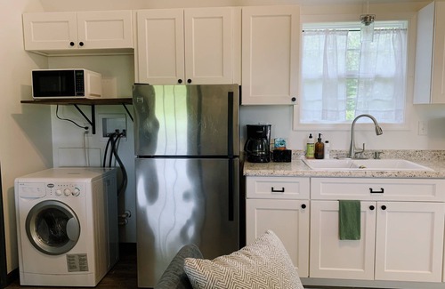 Tucked away from the busy roads, our tiny house is cozy, clean, and overlooks a beautiful farm seen from the outdoor patio (with a gorgeous sunrise view, to boot). The closest beach is 20 minutes away, Milford turf 20 minutes, best coffee shop ever 5 minutes; with great restaurants and other beaches nearby.