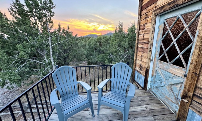 Discover a hidden gem in Central, Utah, just 30 minutes from St. George. This brand new tiny home features a charming Big Foot theme, 1 bedroom, and a cozy loft with indoor fireplace. Relax on the front porch and take in the serene surroundings. Best of all, small pets are welcome, making this the perfect retreat for you and your furry friends. Unwind in the private spa, gather around the fire pit, and gaze at the stars from the star deck. You’ll treasure your time at this memorable place!