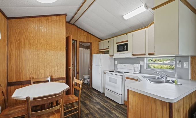 Relax with this rental steps away from the Darlington racetrack too tough to tame. Tiny home living without all the fuss of camping. This cottage has a covered porch, three bedrooms, two full size beds, one set of bunk beds. Living room open to the kitchen and dining area. Linens, towels, dishes and high speed internet included. Includes two parking spots.