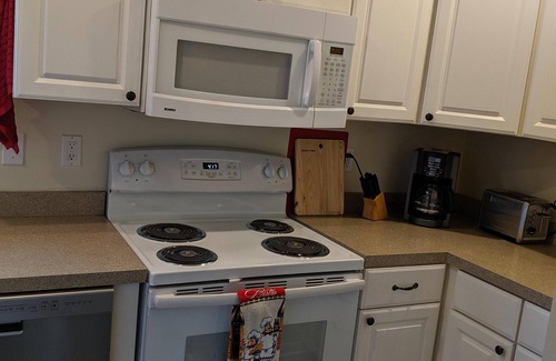 This cozy 2 story townhouse sleeps 6 and has been completely updated with new carpet, paint and all new furnishings. It includes; a fully functioning kitchen with stove, refrigerator, microwave and dishwasher. coffee maker, toaster, crock pot, utensils, dishes, and wine glasses are included to make yourself feel at home. Separate dining area seats 4. A covered veranda off the dining room includes outdoor seating. and coffee table. Living room offers all new furniture including a couch, queen memory foam sleeper sofa and 50" flat screen TV with wi-fi. A half bath is on the main floor.