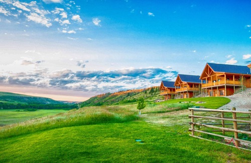 Beautiful hand-crafted cabin situated on the bluffs of a private dude ranch, the wrap-around deck overlooks our equestrian facility, horse pastures, roping arena, and Belt Creek.