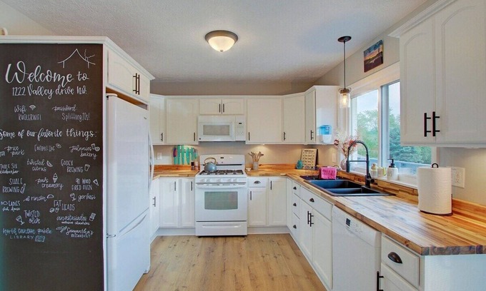Inside, the space boasts three bedrooms and one full bathroom. Thanks to the bedroom layout, four total beds, second living room in the basement (including a Ping Pong Table, foosball table and projector) and contemporary kitchen, you can still relax in private even if you’re staying with additional friends and family.