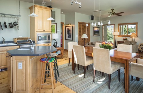 A contemporary, comfortable, convenient 1000 S.F. guesthouse minutes from downtown Jackson. Well appointed with all the modern amenities. Including beautiful furnishings, artwork, flat screen TV's, wood burning stove, and wood floors. A peaceful and serene setting with expansive lawn, gardens, and big views. Bike paths at the front door and Grand Teton and Yellowstone National Parks nearby. Whether your vacation plans include fly fishing, golfing, horseback riding, tennis or skiing, the central location in the valley, make choosing your own adventure effortless and easily accessible. Ideal for an individual, couple, or family of four. A short drive to JH Mountain Resort and Downtown JH.