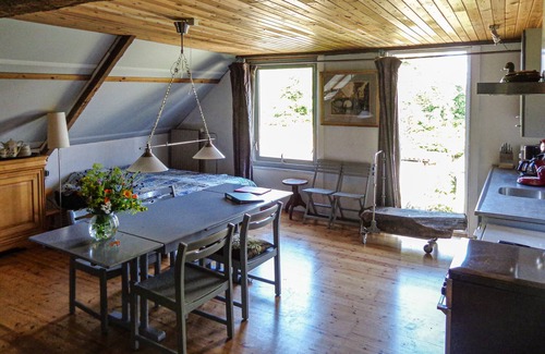 In nice weather, enjoy the large garden shared with the homeowners, with orchard and various resting places.