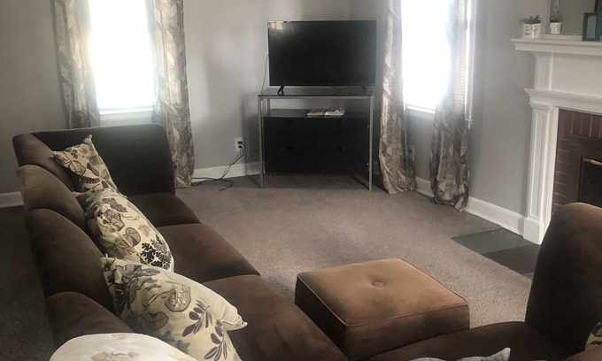 This home has been in our family for 33 years and it's Colonel style home with 3 bedrooms upstairs and 1.5 bath and a finished basement. This house has a large living room with fireplace and nice size dining room and large kitchen. The backyard has an attached patio to the garage and a fire pit in the yard. The backyard has trees set up to hang a hammock. Also we have a privacy fence all around the backyard. The house rents rooms room 1