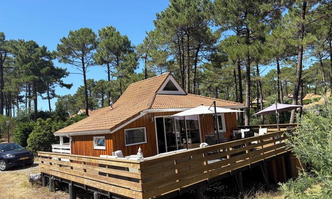 Welcome to the paradisiacal "Chalet du bonheur - La Jenny Naturiste", a truly magical place for lovers of nature, golf, sea and silence. Here you will find a unique experience in the middle of the idyllic naturist village of La Jenny, surrounded by rolling pine forests and just a stone's throw from the golf course. Immerse yourself in the relaxed atmosphere of this place, where you will find a peaceful tranquility under the protective pine trees. A short walk will take you to the supervised swimming pool where you can experience refreshing moments, and in just 10 minutes you will reach the stunning seasonally guarded Atlantic beach.