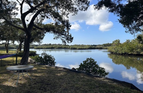 Experience old Florida in this 3 bedroom, 2 bath, waterfront home! Master bedroom features a king bed. 1st guest bedroom has two twins beds. 2nd guest bedroom has bunk beds with a trundle. Comfortable living room and full kitchen. Wake up to the gorgeous sunrises. Enjoy your coffee while bird watching on the screened in patio. Head to The Outpost for the best breakfast in town and to grab beers for a day on the water. Spend the day fishing off the dock or drop your small boat in from the private boat ramp and head out to enjoy some of the best fishing and scalloping in Florida (low bridge with shallow water will not allow access to large boats with towers, tops, etc. Flats boats and Jon boats are best with a 6' beam or less). Clean your catch on the dock and cook dinner on the included grill or head to some of the local haunts. Backwater Fins and Peck’s are the perfect distance for a sunset cocktail cruise on your boat (a GPS is suggested). This is REAL Florida living. Bring your bug spray and have an adventure!