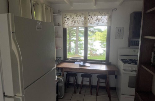 This cozy waterfront home/cottage is situated on Herendeene Lake, which is a no-wake lake. It's a beautiful and tranquil lake, perfect for fun and relaxation. The property has two bedrooms and one bathroom. One of the bedrooms has a queen bed and bunk beds, while the other bedroom has a full-sized bed. The bathroom features a shower/tub combination.
