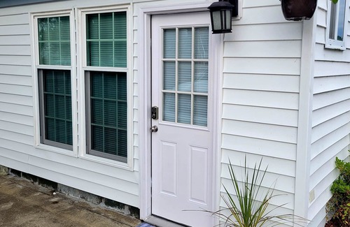Virginia Beach is waiting for you at this centrally located studio-style 1 bedroom, 1 bathroom beach-themed townhome. With an emphasis on stylishness and cleanliness, we have designed this lovely little inn to be everything you need to make you feel welcome and comforted. Forget waiting an hour in traffic to go to concerts! With only a ten minute walk, this is the closest rental property to the Virginia Beach amphitheater. There are also plenty of shopping stores and numerous restaurants within CLOSE walking distance of the house! We are only 10 minutes drive to the Virginia Beach resort area, Virginia Beach boardwalk, and Virginia aquarium and just 15 minutes from Sandbridge. We are also less than 3 miles from NAS Oceana and the massive new Amazon facility! Don't let all the nearby city life by fool you though. This townhome is situated on nearly 1 acre of property with all everything a nature lover could want!