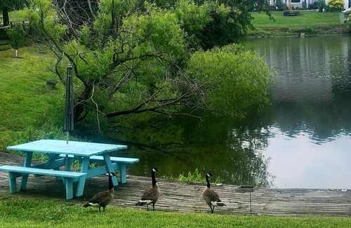 With a dock and over 300 feet of waterfront, find yourself just steps away from our fully private nine acre pond stocked with trophy sized largemouth bass and other species. We are also situated directly beside a nature trail and bike path that goes all throughout the city of Virginia Beach, so bring your bicycles and explore! We have a flock of over fifty wild ducks and geese that we feed daily. If you would like to borrow some fishing poles to fish in the lake, or if you would like to help feed the ducks, geese, fish, and turtles, please just let us know! The fishing in the lake is really great but please practice catch and release. We also have a fire pit and Traeger grill on the back deck for use. We are animal lovers, but after a few bad experiences with renters with naughty pets, we apologize for not allowing pets.
