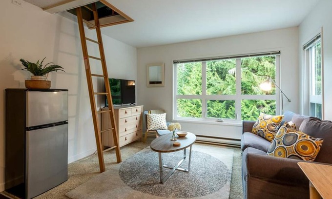 Guests have access to our entire suite. Our unit is located on the ground level. Since Whistler is all mountainous, there is a short flight of 10 exterior stairs to reach the entrance. Also, there is a ladder to the loft space so children should be able to safely ascend & descend without supervision. We are not child proofed, so not for toddlers. For infants who cannot yet climb, our place will be fine.