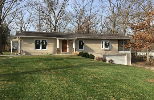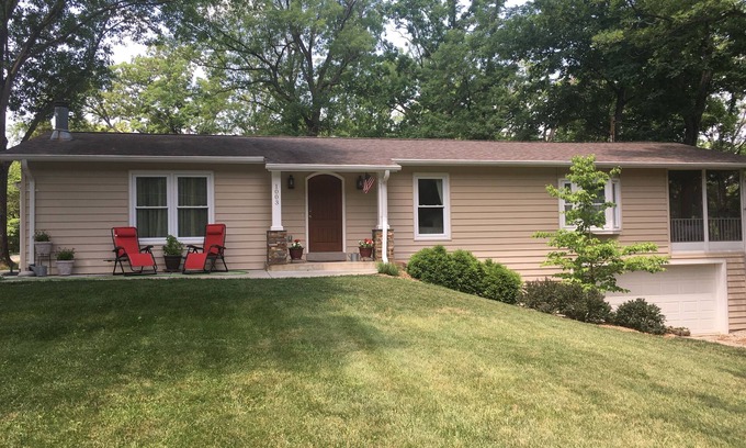 Guests are sure to enjoy a memorable stay in this fully furnished, 3 bedroom/2 bath ranch home property. The main/master bedroom has a king-sized bed, while the 2 remaining rooms are furnished with a queen and twin-sized bed (s), comfortable for sleeping 5 people. The cozy living room is furnished with high end leather couch/chair/ottoman.The kitchen is perfect for dining as it is equipped with frig/oven/microwave/dishwasher, and pantry with dishes etc.. Situated 3 short miles from Defiance/near the Katy Trail. Guests can enjoy an afternoon of biking or winery and later watch the sunset from park-like backyard.