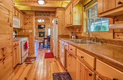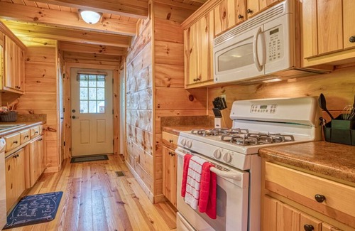 The kitchen is compact, yet conveniently outfitted with all the comforts of home. You can prepare a quick midnight snack, or a Thanksgiving dinner for 6. The gas grill is located just outside the side kitchen door.