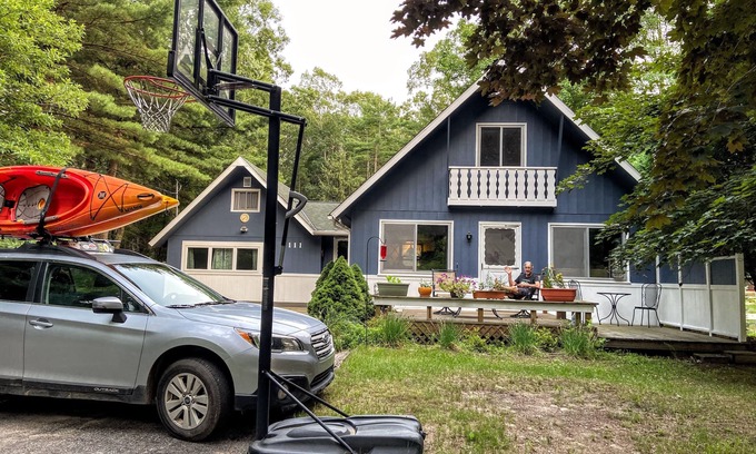 Basketball hoop, fire ring, board games: we've thought of it all! Hike out the back woods to access miles of ski/ bike trail on public lands. Come enjoy Michigan’s beauty all year around! With AC for summer and pellet stove and furnace for winter Pentwater Chalet-by-the-Lakes is a cozy and comfortable year around retreat. Please note: We do not provide plow service in winter, so an all wheel drive vehicle is recommended. A snow shovel and salt is available for your use.