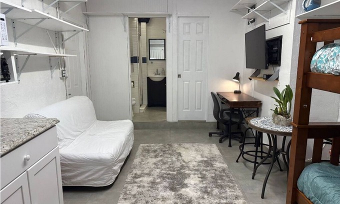 This cozy studio is perfect for your escape to Miami. With 1 bedroom, featuring 1 bunk bed and 1 sofa bed, it's an enjoyable space for guests to relax and unwind. The marvelous property offers all the necessary amenities like AC, heating, Wi-Fi, and shared washer & dryer machine. The bathrooms are equipped with showers for your convenience. Located in the heart of Miami, this studio within a private house provides a comfortable and inviting private atmosphere. Whether you're exploring the vibrant city or simply enjoying a peaceful retreat, we hope you'll enjoy your stay at our studio.
