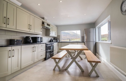 Craig Yr Ronwy has a kitchen/diner, a utility, boot room, sitting room with woodburning stove, second sitting room, a super-king-size bedroom, a king-size, a double, a twin, a bathroom and a ground-floor shower room. Appliances consist of a Range cooker, microwave, fridge/freezer, washing machine, dishwasher, tumble dryer, and two TVs. Outside there is an enclosed garden with elevated lawn, patio areas with furniture, and off-road parking for five cars. Two well-behaved dogs welcomed, but sorry, no smoking. WiFi, fuel, power, bed linen and towels are all included, along with a highchair, travel cot and stairgate. You'll find a shop in 7.6 miles, pub in 7.7 miles, and Llyn Celyn in 1.6 miles. Escape to the best of Gwynedd at Craig Yr Ronwy. Note: There are steps in the garden and to the exterior; please take care. Note: Parking is available in the garden, and in the field opposite the home; please keep the farm track clear. Note: Dogs must be supervised at all times, due to neighbouring farmland.