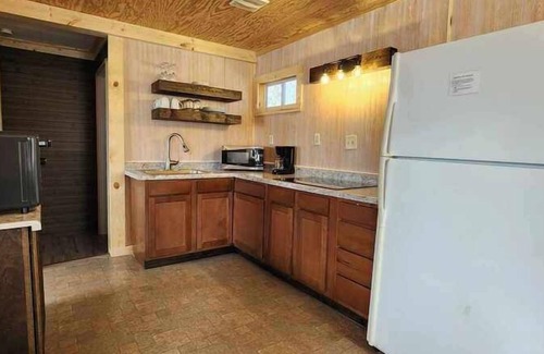 Crappie is a two bedroom cabin with a Single over Double bunk bed in one bedroom and Queen bed in the other bedroom. Living room with a large sectional couch and 32" Smart TV. Fully furnished kitchen with microwave, coffee maker, toaster, electric cook top, XL toaster oven and refrigerator/freezer. Bathroom with stand up shower. Cabin has heat and air-conditioning. Housekeeping is not provided during your stay. One set of sheets, bathmat, dish rag and dish towel are provided. You will need to bring your own bath and beach towels. Sorry No Pets and No Smoking.