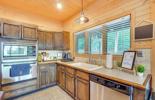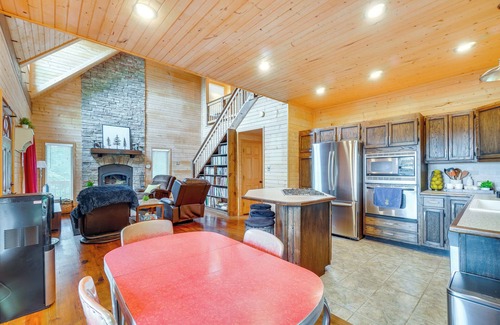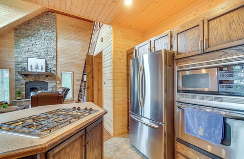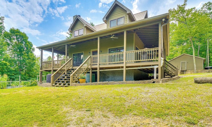 Boasting a furnished porch with mountain views, a scenic patio with a fire pit, and a full kitchen, this peaceful Crawford vacation rental is the perfect spot for outdoor adventurers! Unpack your bags in the 2-bedroom, 2-bath cottage, then head out to explore — the area is brimming with lakes, waterfalls, hiking and ATV trails, nature overlooks, and more! After full days, fire up the gas grill for a homemade BBQ, then cozy up near the fireplace with a book from the collection in the living room.